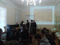 На выставке «И.Д. Василенко – человек и писатель» представлена уникальная коллекция документов, фотографий и других личных вещей принадлежавших писателю И.Д. Василенко. Собраны книги автора переведенные на иностранные языки (на 27 языков!). В 1950 г. писателю была присуждена Сталинская премия III степени в области литературы за повесть «Звездочка». Творчество Ивана Дмитриевича отличается от других детских писателей тем, что ему удавалось писать о детях для детей. Самыми известными стали повести о приключениях Артемки («Волшебная шкатулка», «Артемка в цирке» и др.) Он был большим другом детей – всегда угощал при встрече их конфетами. Ряд произведений автора был экранизирован, и у студентов была прекрасная возможность с ними познакомиться.