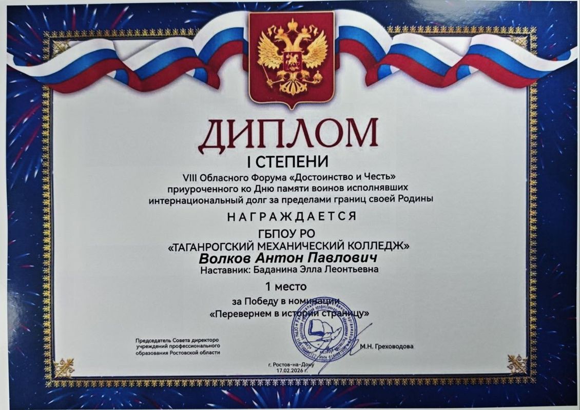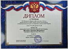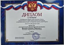Минаев Артём гр. 1 ПМ – Диплом I степени 2 место номинация «Души, опалённые Афганом»